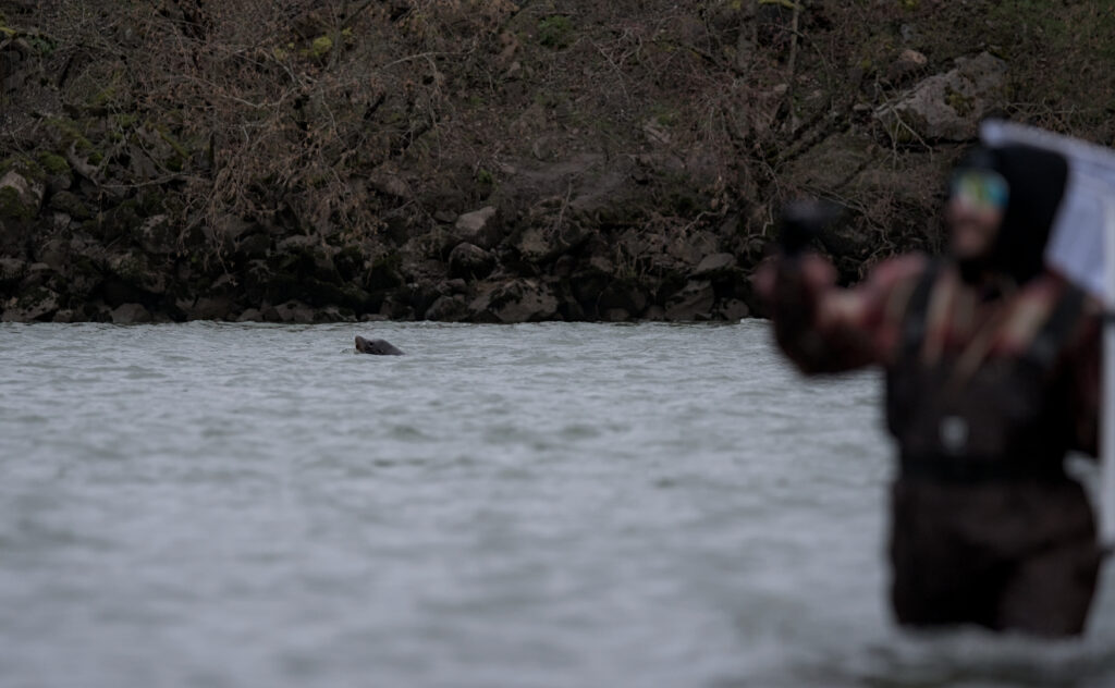 Despite the presence of eager Sea Lions, dip netters stood unwavering in their pursuit to capture nets of Smelt.